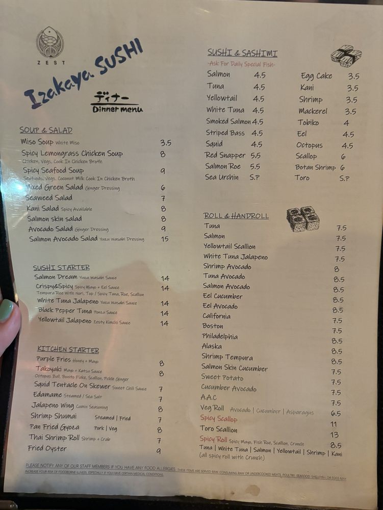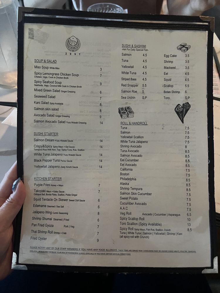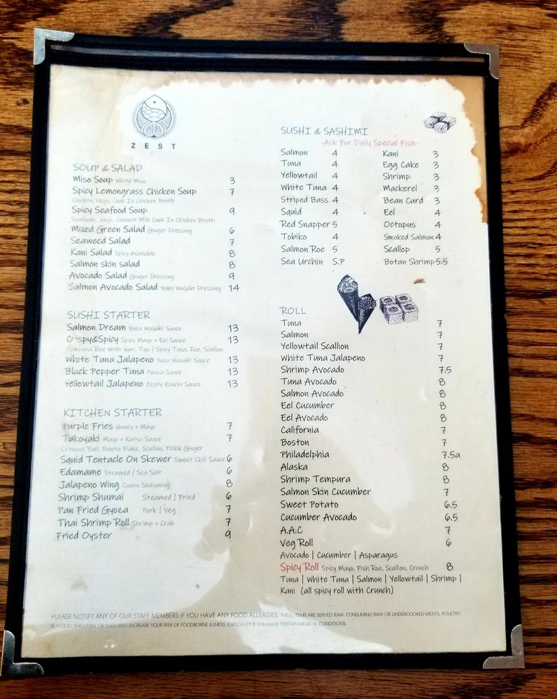 Zest Sushi Menu (Update 2025)