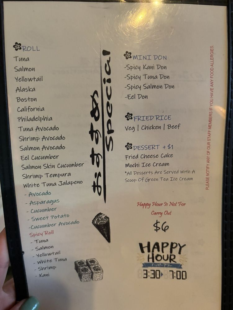 Salmon, Tuna, Yellowtail, Cucumber, Avocado, Scallion, Tobiko